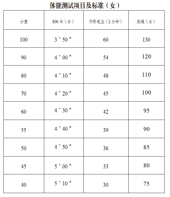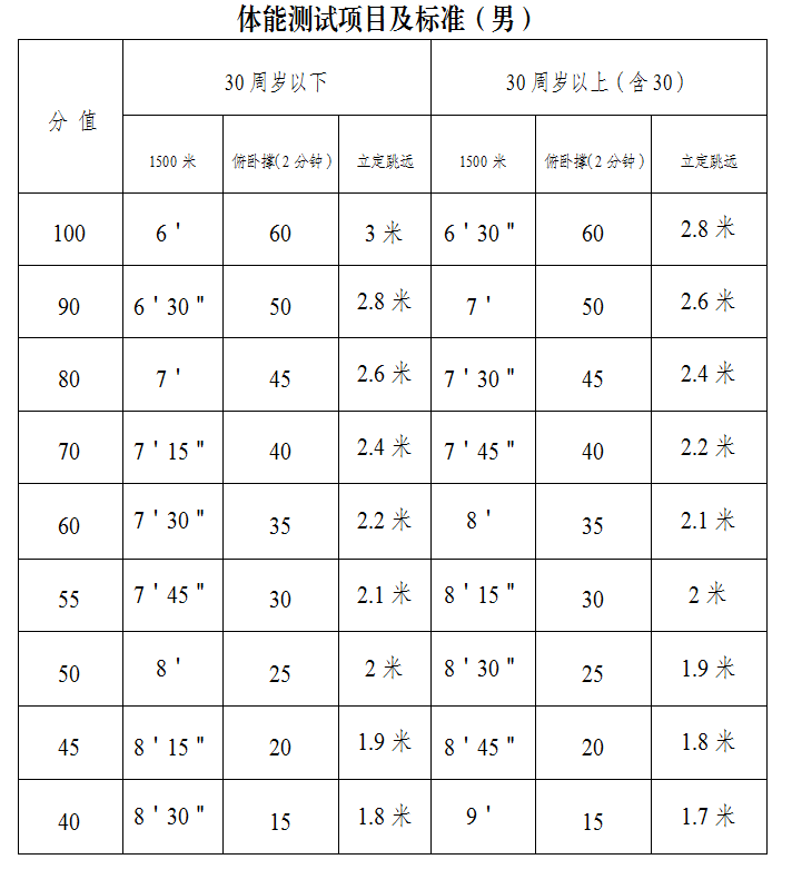 (2)體能測試項(xiàng)目及標(biāo)準(zhǔn)(附件3)。